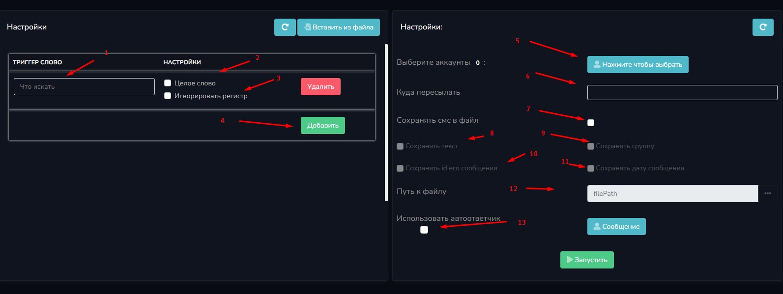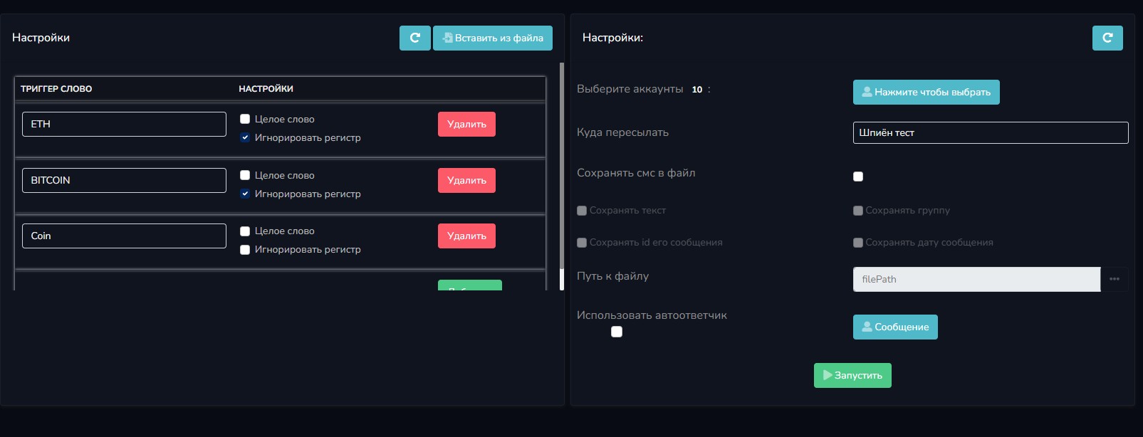 Триггер слова: это ключевое слово, по которому программный модуль будет отлавливать сообщения и пересылать их вам в выбранный чат, личку или канал.