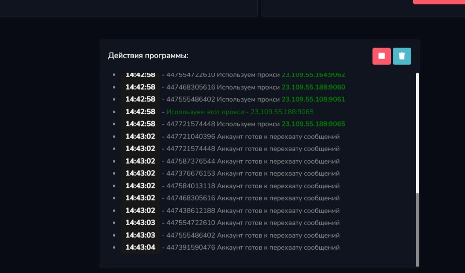 К сожалению, в процессе ожидания произошла ситуация, связанная с сменой моего IP-адреса провайдером "Ростелеком". Это привело к сбою прокси, и мне пришлось перезаполнить список ключевых слов. Теперь пересылка сообщений вновь началась.