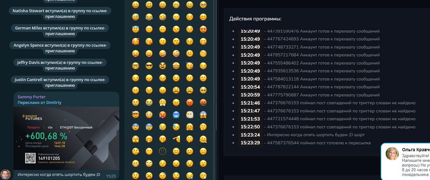 Для работы с мониторингом хорошо подходят аккаунты со спам-блоком, так как они могут отправлять сообщения в приватный чат без ограничений. Это открывает новые возможности.